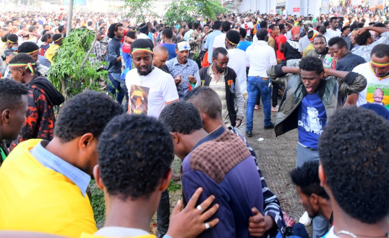 Ethiopians react after an explosion during a rally in support of the new Prime Minister Abiy Ahmed in Addis Ababa, Ethiopia June 23, 2018. Credit: Reuters/Stringer