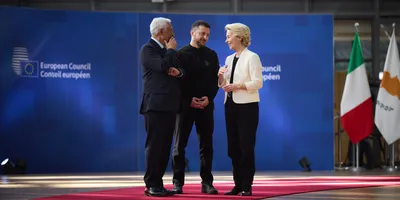 Walking into the European Union summit flanked by European Commission President Ursula von der Leyen and European Council President Antonio Costa on either, the arrival of Ukraine's president was a vision of unity.