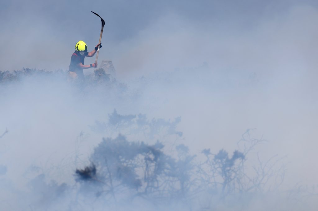 Firefighters attend a gorse bush fire, during a heatwave near Zennor, Cornwall, Britain, July 19, 2022. Photo: Reuters/Tom Nicholson