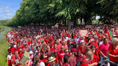 In The Hague, the number of protesters was estimated at around one lakh by organisers of the protest, which included Amnesty International and Save the Children. Protesters wore the colour red and formed a symbolic ‘Red Line’ to demonstrate their frustration with the increasing number of deaths in Gaza.