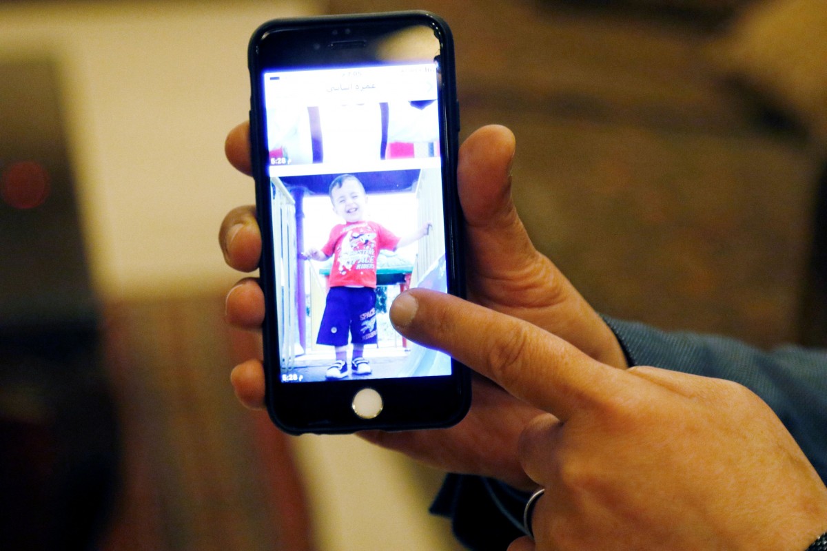 Abdullah Ghaleb Kurdi shows a picture on his phone of his son, Alan Kurdi, whose dead body was found washed up on a Turkish beach in 2015, during an interview with Reuters in Erbil, Iraq February 27, 2020. Photo: Reuters/Azad Lashkari