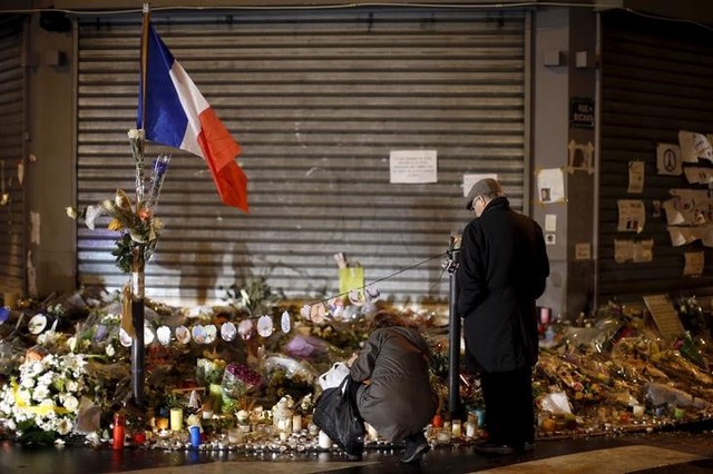 People mourn outside Le Petit Cambodge and Le Carillon restaurants a week after a series of deadly attacks in the French capital, in Paris, France, November 20, 2015. Credit: Reuters/Benoit Tessier