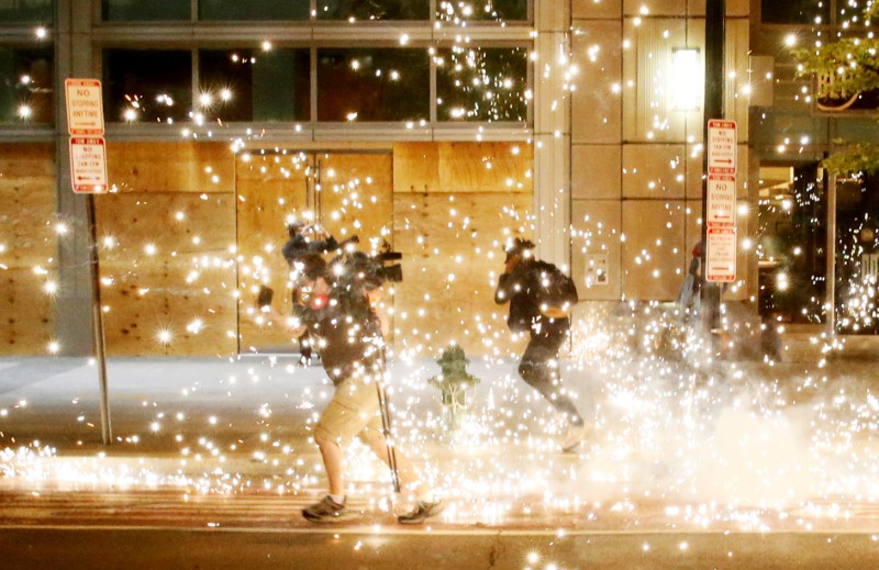 People run as police disperse demonstrators during a protest amid nationwide unrest following the death in Minneapolis police custody of George Floyd, in Washington, US, May 31, 2020. Photo: REUTERS/Jim Bourg