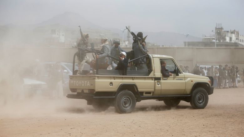 Tribesmen ride on the back of a truck as they attend a tribal gathering to show support to the Houthi movement in Sanaa, Yemen on November 10, 2016. Credit:Reuters/Khaled Abdullah