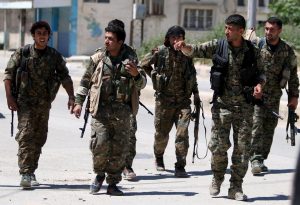 Kurdish fighters from the People's Protection Units (YPG) walk along a street in the southeast of Qamishli city, Syria, April 22, 2016. Photo: Reuters/Rodi Said/File Photo