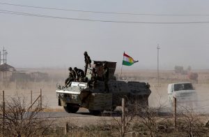 Syrian Kurdish fighters ride in a military vehicle in the town of Bashiqa, after it was recaptured from the Islamic State, east of Mosul, Iraq, November 12, 2016. Photo: Reuters/Azad Lashkari