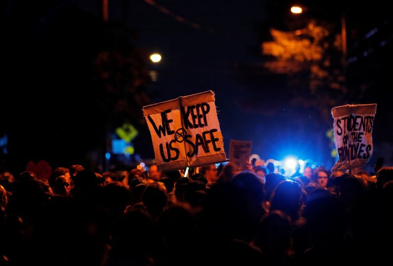 The standoff ended without any clashes as organizers urged the crowd to move away and begin marching off campus. Police, who appeared to be avoiding a confrontation, rode bicycles ahead of the march to stop traffic.