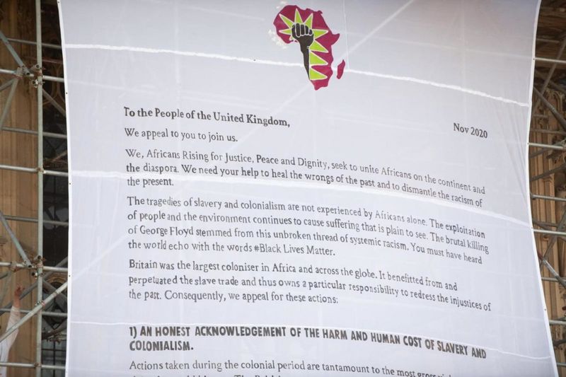Africans Rising, a Pan-African movement of people working for Justice, Peace and Dignity, created the letter for their #ReRightHistory campaign, which calls for honest acknowledgement of the harm and human cost of slavery and colonialism, the legacies of which continue to have negative influence on the economic and political trajectory of countries across Africa, whilst undermining its ecological sovereignty. The text also demanded reparations to the victims of slavery and colonialism and the establishment of truth and healing commissions to enable full acknowledgement of the legacies of slavery, colonialism and ongoing systemic racism.