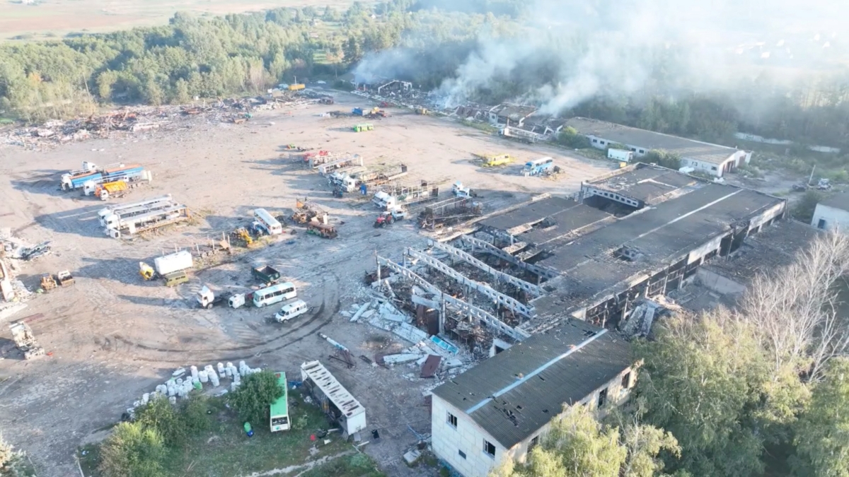 Drone footage shows destroyed buildings and damaged vehicles in Balakliia, amid Russia's attack on Ukraine, in Kharkiv region, Ukraine, in this screengrab obtained from a social media video released September 8, 2022. Photo: Suspilne Kharkiv/Yevhen Kozhyrnov/Handout via Reuters