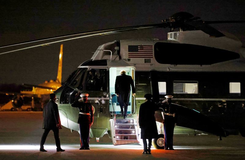 US President Donald Trump boards Marine One at Joint Base Andrews in Maryland to return to the White House, after visiting the US-Mexico border wall in Harlingen, Texas, January 12, 2021. Photo: Reuters/Carlos Barria/File Photo