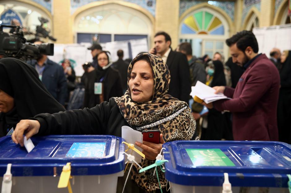 A woman casts her vote during parliamentary elections at a polling station in Tehran, Iran February 21, 2020. Photo: Nazanin Tabatabaee/WANA (West Asia News Agency) via REUTERS