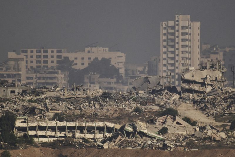 Buildings that were destroyed during Israeli ground and air operations stand in the northern Gaza Strip as seen from southern Israel, Monday, Aug. 25, 2025. Photo: AP/PTI