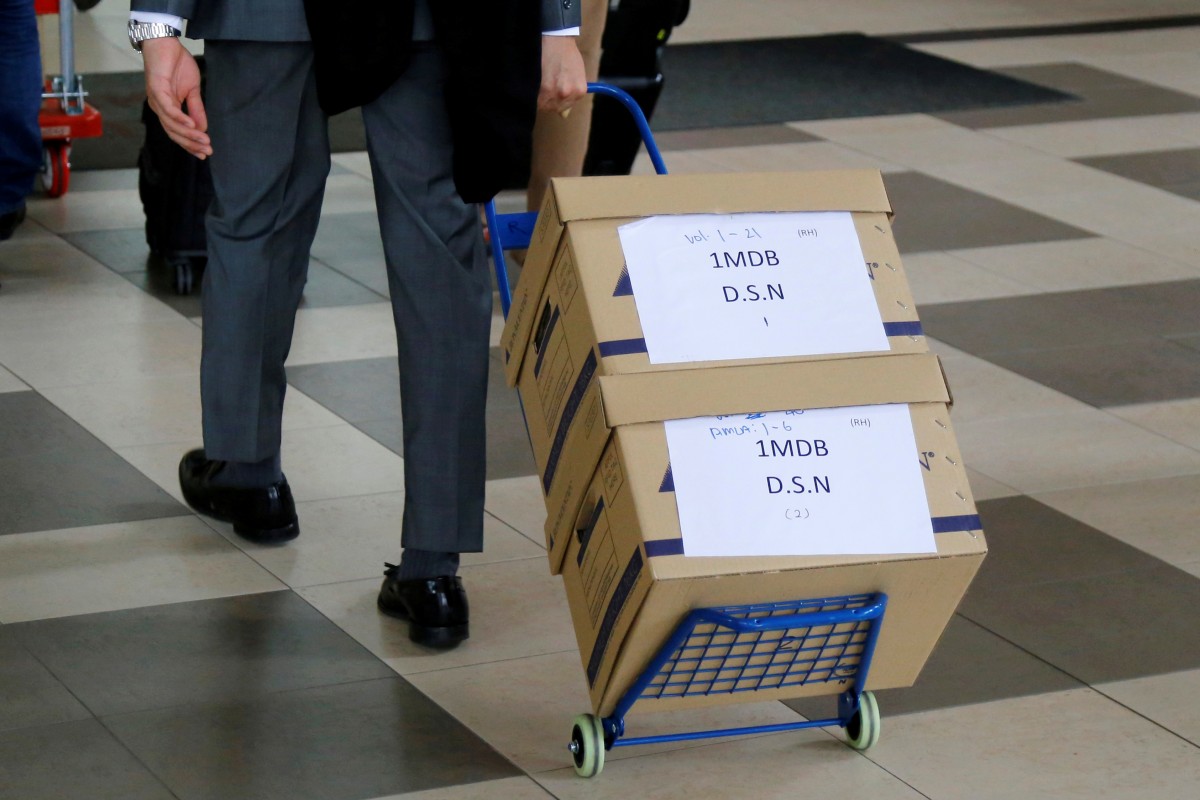 Boxes of 1Malaysia Development Berhad (1MDB) documents arrive at Kuala Lumpur High Court in Kuala Lumpur, Malaysia, August 28, 2019. Photo: Reuters/Lai Seng Sin/File Photo