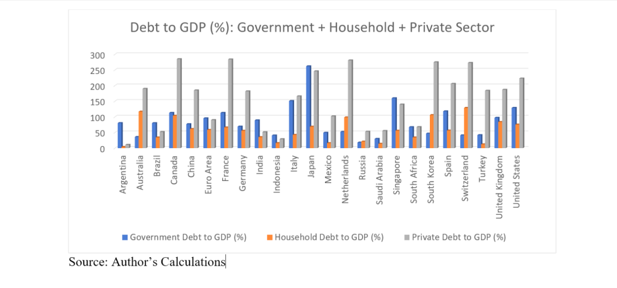 Looking at the debt composition of all G20 countries, it is worth iterating the vulnerabilities that exist, from those nations with a high government debt to GDP ratio (for countries like Argentina, Brazil, Canada, China, Euro Area, France, India, Italy, Japan, Singapore, Spain, UK, US) to those with high private and household debt levels.
