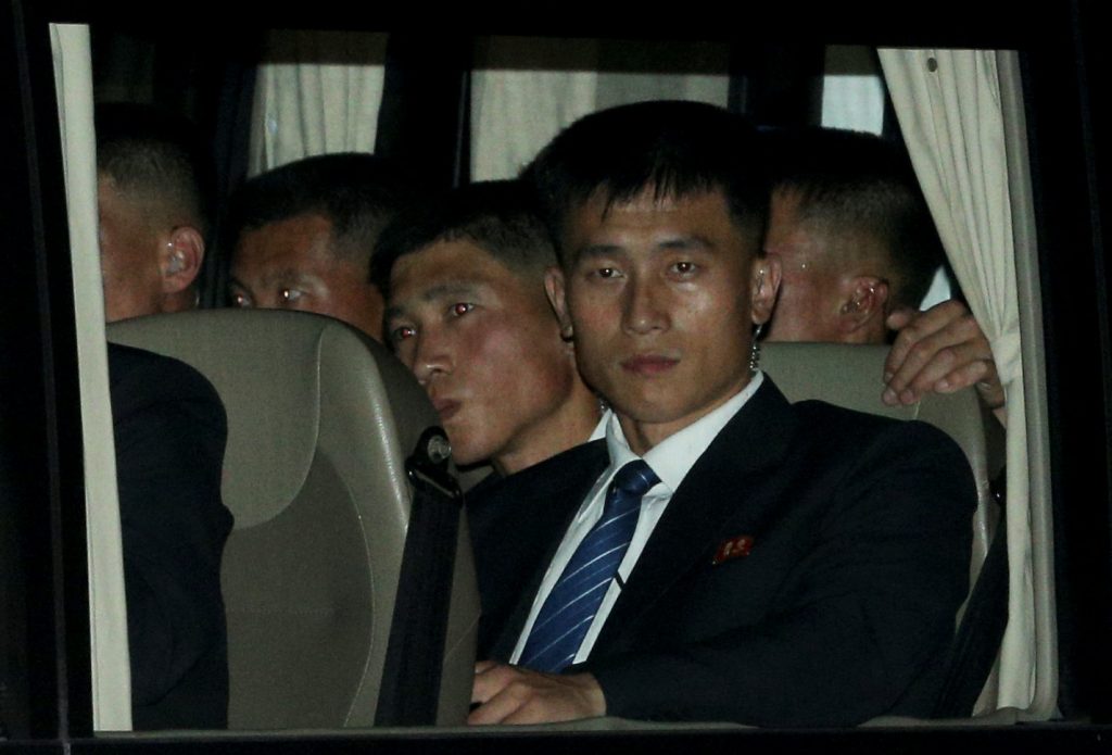 Members of the North Korean delegation and security leave the St Regis hotel in Singapore, June 11, 2018. Credit: Reuters/Athit Perawongmetha