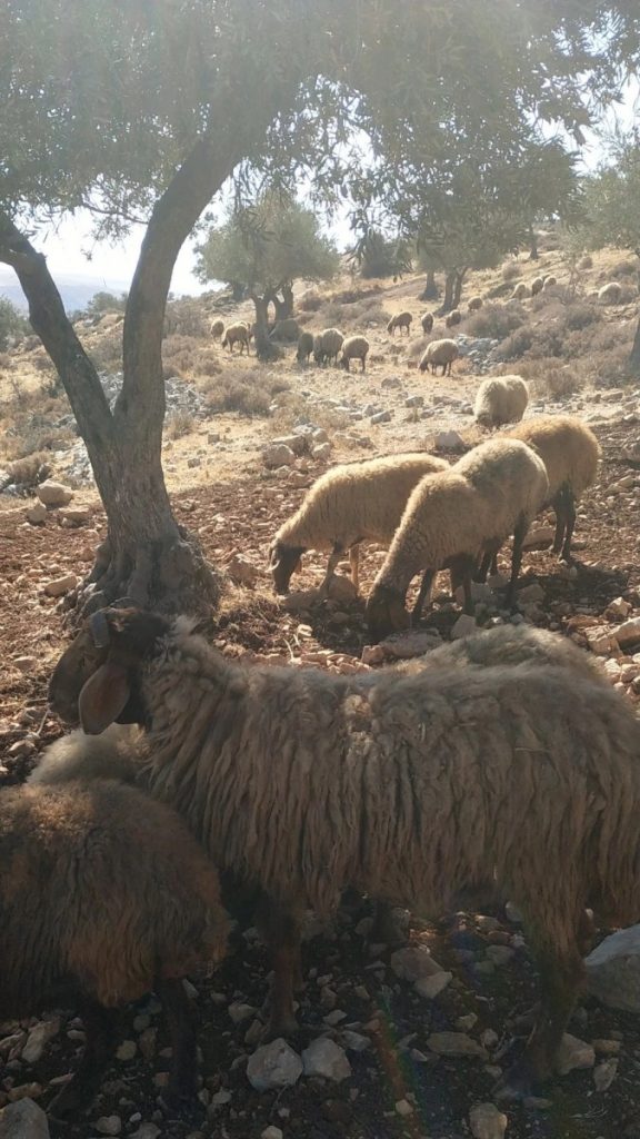Dawn at Dir Jarir. One herd of sheep is already out on the hills with Khairi’s son. They’re grazing not so far from the noxious outpost of Maaleh Ahuvia, but for now, things are quiet. No settlers in sight. That sentence reveals the story of Dir Jarir. Dawn, noon, dusk, midnight, and all the hours in between – demented teenage settlers can turn up at any moment, in the Palestinian fields, in their makeshift tents, and even in their homes. They threaten and bully them, often they beat them, and always they invade their fields, vineyards, olive groves, and grazing grounds, wreaking havoc. The shepherds and farmers live in a state of terror, and the apparatus of the state is unwilling to intervene. There are good reasons to think that the army in the area stands with the settlers. The police are reluctant to come to Dir Jarir without an army escort.