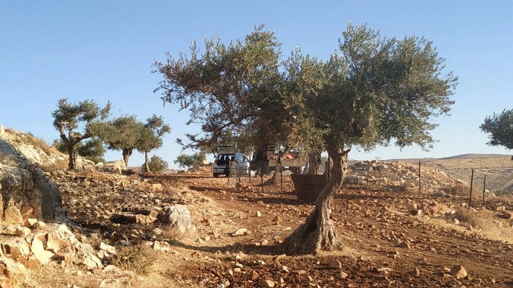 Abu Rafa’ says he’s prepared to come to the Binyamin police station and file a complaint against the settlers for trespassing, violence, and damages. He’s already done that twice. This might seem to you a rather ordinary business, but in fact it’s a big step. In general, the landowners, both at Taybeh and in Dir Jarir, are reluctant to go anywhere near the police station. For good reason: I myself know of several cases where Palestinians who had the audacity to submit a complaint to the police ended up being arrested, sometimes for long periods. A Palestinian who walks into a police station is guilty a priori of the crime of being a Palestinian. But Abu Rafa’ and Muhammad Hasan and others in Dir Jarir can see that the only hope for their survival is to use the mechanisms still available to them and to us, including the police. Arik worked hard, over months, to convince them of this.