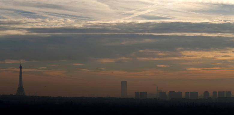 A small-particle haze hangs above the Eiffel Tower, that is seen on the horizon from Suresnes, near Paris, France, December 8, 2016. Credit: Reuters/Christian Hartmann