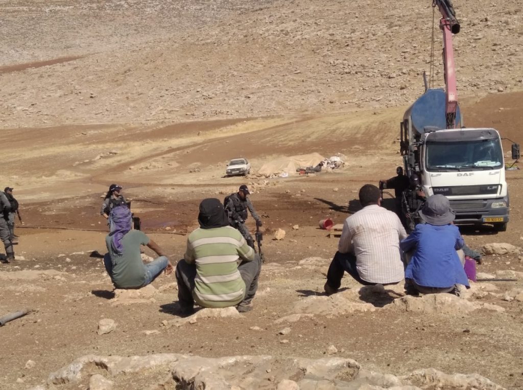 Some days ago, they received a visit from the army or the Civil Administration (it’s the same thing). The officer told them there were no problems, they had nothing to worry about. Then, at dawn on July 14, soldiers came with their cranes and trucks and other devilish devices and confiscated everything these people had.