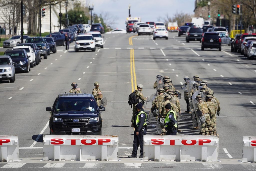 Dozens of National Guard troops, who have been stationed at the Capitol since the January attack, quickly deployed. Heavily armed and in riot gear, they jogged in columns to stand in rows at the scene and around the complex.
