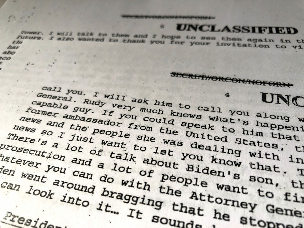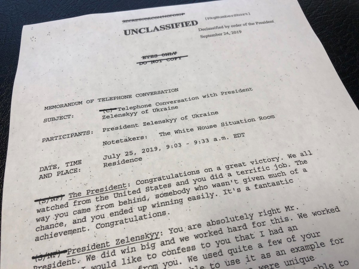 The summary was released a day after US House of Representatives Speaker Nancy Pelosi said that the Democratic-led chamber was launching an official impeachment inquiry, setting up a political showdown that threatens Trump's presidency as he campaigns for re-election in 2020.