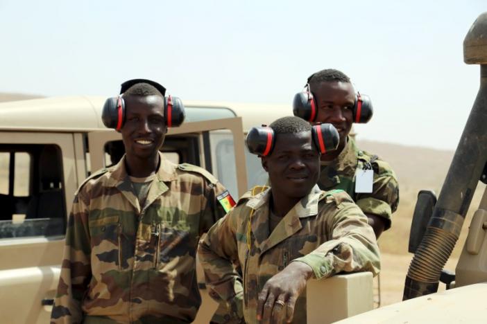 Senegalese soldiers watch a car bomb explosion during the US-led "Flintlock" training exercises for African militaries, in Thies, Senegal, February 18, 2016. Credit: Reuters