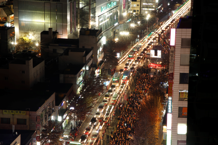 Mass protest against President Park Geun-hye in Daegu in 2016. Photo: 파훼/Wikimedia Commons. CC BY-SA 4.0.
