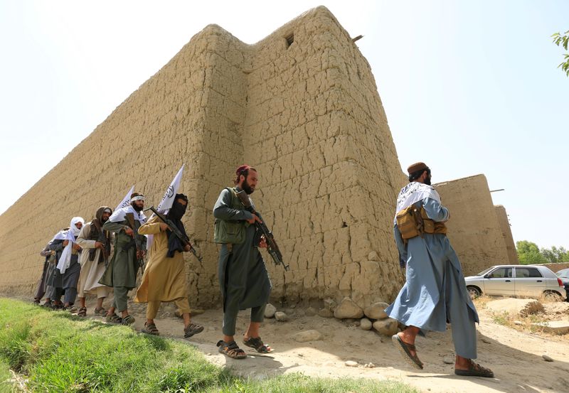 Taliban walk as they celebrate ceasefire in Ghanikhel district of Nangarhar province, Afghanistan June 16, 2018. Credit: Reuters/Parwiz