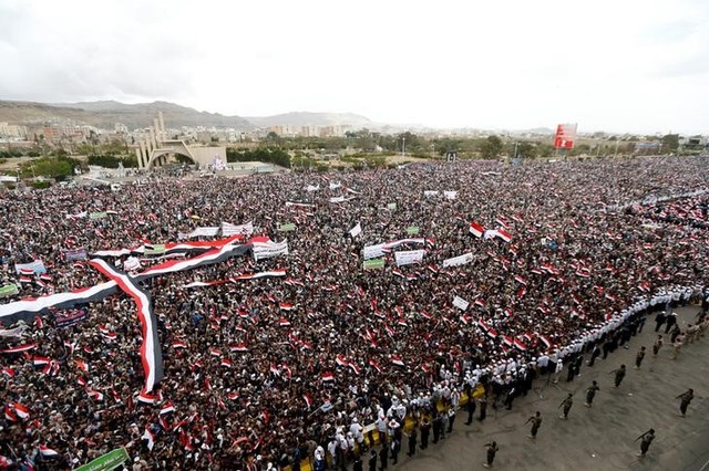 Witnesses said that a crowd estimated at more than 100,000 people comprising supporters of the Houthis Ansarullah group and former President Ali Abdullah Saleh's General People's Congress (GPC) party pressed into Sabeen Square in central Sanaa.