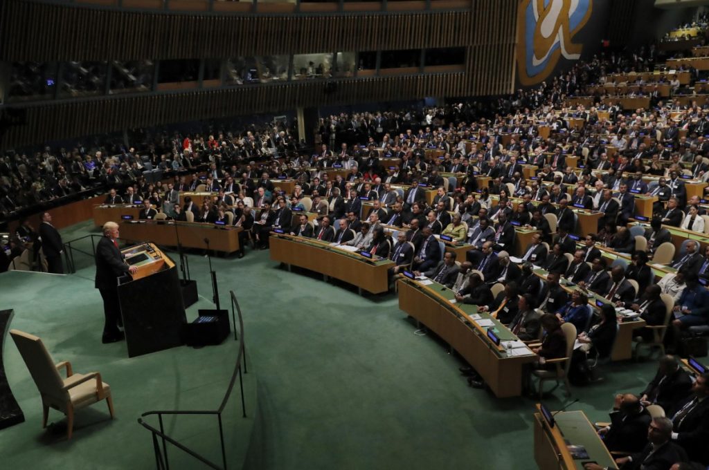 US President Donald Trump addresses the 73rd session of the UN General Assembly at UN headquarters in New York, US, September 25, 2018. Credit: Reuters/Caitlin Ochs