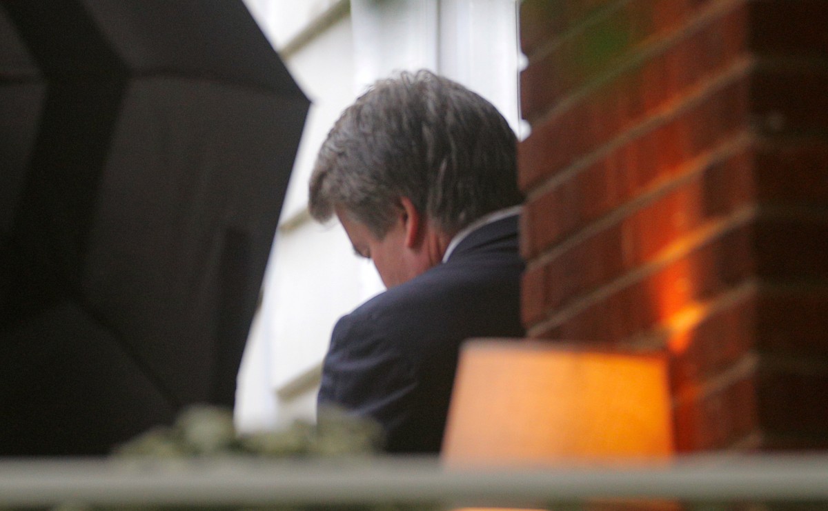 US Supreme Court nominee Judge Brett Kavanaugh leaves his house as US Marshalls try to hide him from cameras with an umbrella in Chevy Chase, Maryland, US, September 25, 2018. Credit: Reuters/Jim Bourg
