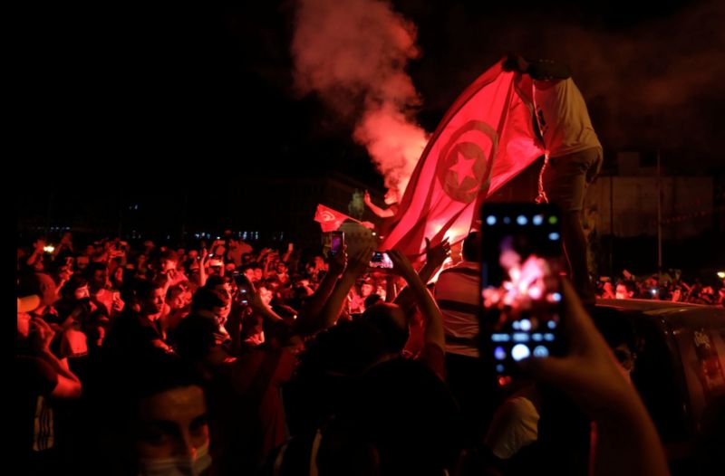 Tunis: On the evening of July 25, 2021, a large crowd gathered, cheering, singing, and waving large Tunisian flags with pride on Avenue Habib Bourguiba in downtown Tunis. Earlier in the evening, President Kais Saied had made a televised announcement that he was sacking Prime Minister Hichem Mechichi, suspending parliament for 30 days, and removing immunity from ministers.