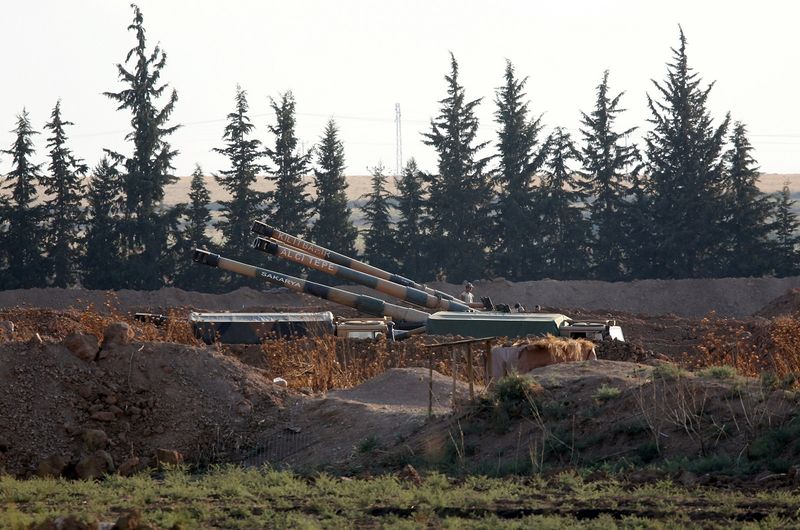 Near the Turkish border town of Akcakale, across from Syria's Tel Abyad, a Reuters witness saw howitzers placed behind earth embankments on Turkey's side of the border, pointed towards Syria.