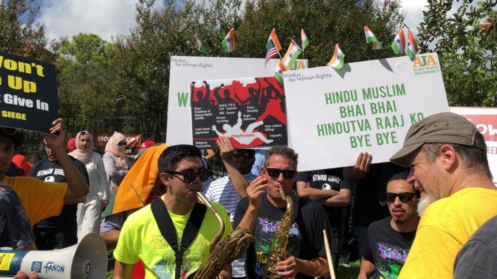 File photo of Hindus for Human Rights protesters at the 'Howdy, Modi' rally in Houston, Texas on September 22, 2019. Photo: Alliance for Justice and Accountability