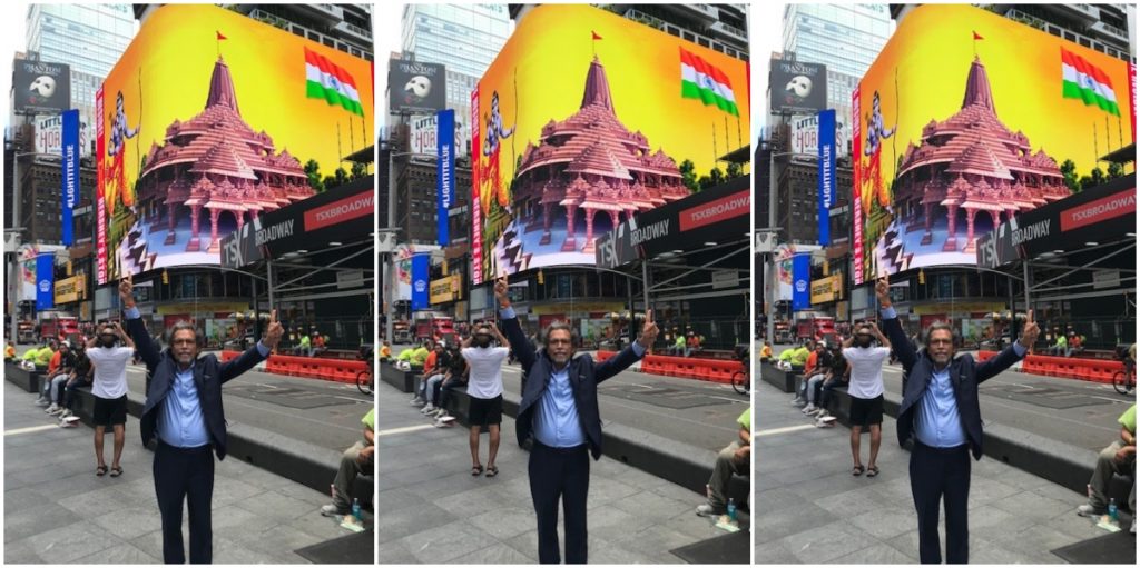 “It shows how successful Indians are in America that our Ram Bhagwan, our Ram Ji temple and our tricolor is on the most iconic screen in the world,” said Sewhani.