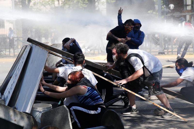 Demonstrators clash with security forces during a protest against high living costs, in Concepcion, Chile October 21, 2019. Photo: Reuters/Juan Gonzalez
